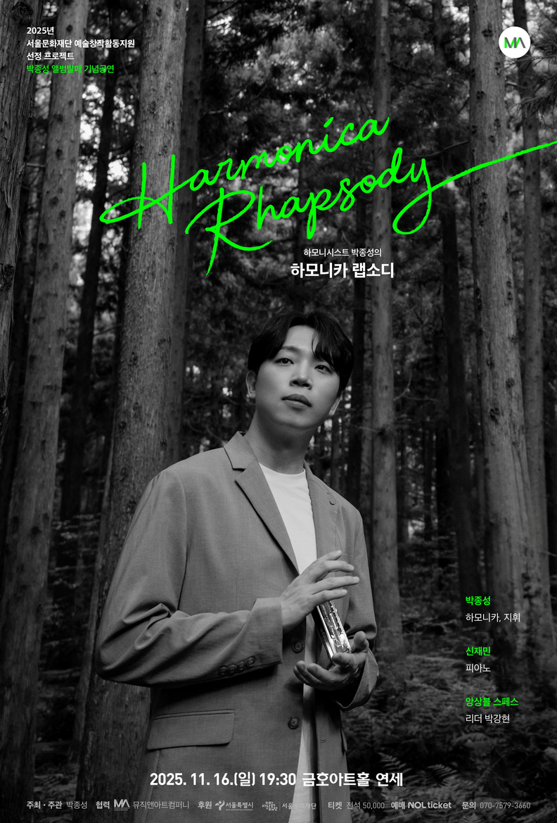 하모니시스트 박종성이 신보 <하모니카 랩소디>의 발매를 앞두고 실연을 선보인다. 하모니카와 피아노, 스트링 체임버 오케스트라가 함께하는 이번 프로젝트에서는 하모니카와 오케스트라를 위한 협주곡, 편곡 작품, 세계 초연곡을 선보인다.