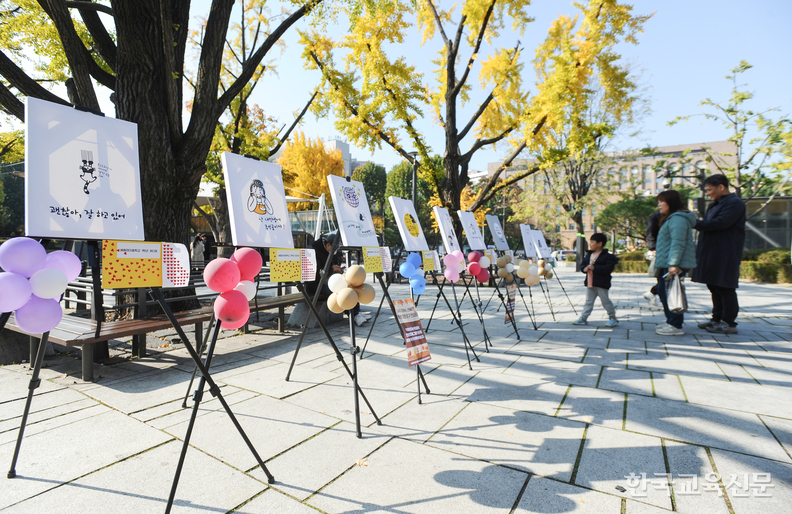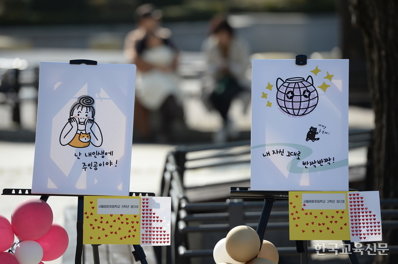 서울특별시중부교육지원청(교육장 최도규)이 주최한 ‘생명존중 응원 문구 전시회’가 <작은 말이 큰 힘이 되는 순간:나를 응원하는 한마디>라는 주제로 3일과 4일 서울 종로구 마로니에공원에서 개최됐다.