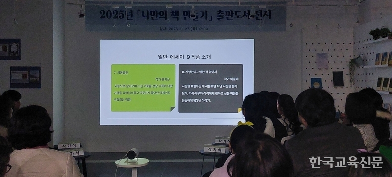 경기도교육청평생학습관(관장 류영신)이 11월 27일 오후, 1층 윤슬갤러리에서 ‘2025 나만의 책 만들기’ 출판기념회를 열고 8개월간의 창작 여정을 마무리했다. 글쓰기 교육부터 원고 집필, 온라인 첨삭, 편집과 디자인, 그리고 출판까지 ‘책 한 권이 태어나는 전 과정’을 함께 완성한 자리다.