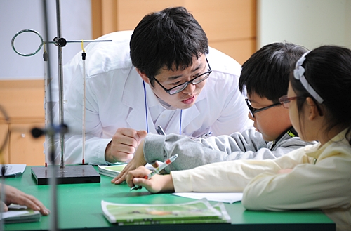 계림초등학교에서 진행된 4교시 수업. 선지우 춘천교대 예비교사는 학생의 눈높이에 맞춰 진지하게 학생들을 지도했다.