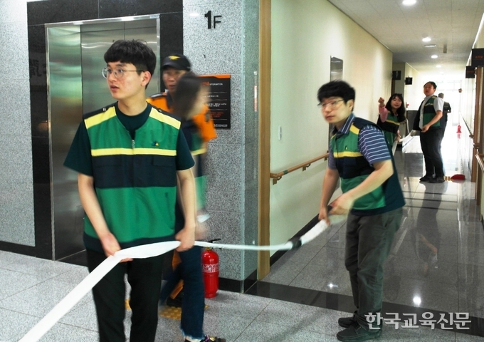 경상북도문경교육지원청(교육장 엄재엽)은 5월 17일(목) 오후 2시부터 2018년 재난대응 안전한국훈련과 연계하여 문경소방서 현장대응단과 합동으로 소방훈련을 실시했다.