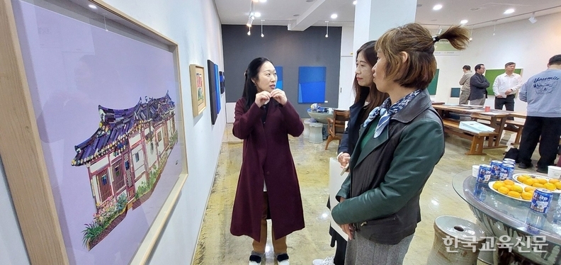 행사는 갤러리 대표 인사말을 시작으로 참석자 소개, 미술 특강, 작가들의 작품 설명, 관람객과의 대화, 선물 증정, 기념촬영 순으로 진행됐다. 김형진 대표는 “이번 전시는 각기 다른 시선으로 포착한 가을의 서정적 표정을 담았다”며 “자연과 인간, 사유와 감성이 교차하는 가을의 풍경을 예술적 언어로 풀어냈다. 관람객은 작품 앞에 서서 자신 안의 ‘내면의 소리’를 들을 수 있을 것”이라고 전했다.
