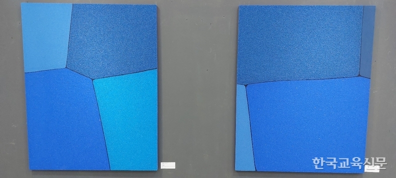 김정환 작가는 “어릴 적 서예에 빠졌던 영향으로 검은색을 주로 쓴다”며 “이번에는 수원화성을 조형적으로 재해석해 작업했다”고 소개했다. 그는 최근 블루톤을 더한 작품을 선보이고 있는데, “조선시대 선비의 색인 블루가 블랙과 어우러져 고급스러운 분위기를 만든다”고 덧붙였다.