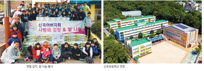 ‘한 아이를 키우기 위해 온마을이 필요하다’라는 말이 딱 들어맞는 곳이 또한 신곡초다. 학부모는 학교를 믿고 전폭적 지지를 보낸다. 그래서일까. ‘신곡학부모회’는 그 어느 학부모회보다 활발하다. 특히 ‘아버지회’ 활동이 활발해 학교 행사 지원과 자녀 교육 참여문화 확산에도 기여하고 있다. 학부모와 지역이 함께하는 이런 교육공동체는 학생들에게 ‘함께 살아가는 따뜻한 배움터’의 의미를 일깨워 준다.