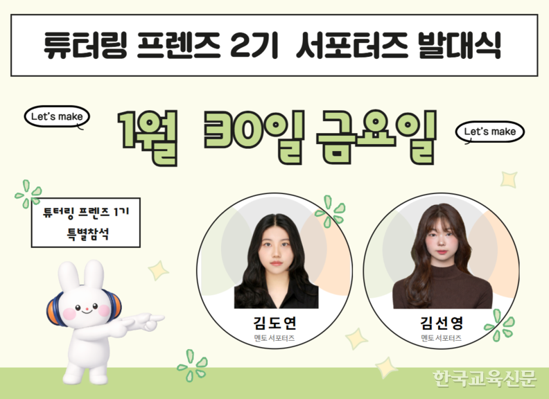 특히 대학생 멘토의 관점에서 멘티와의 라포 형성 방법, 멘티별 맞춤형 튜터링 노하우 등을 공유하는 콘텐츠 제작에도 참여할 예정이다. 튜터링 프렌즈 2기는 올해 12월까지 활동한다.