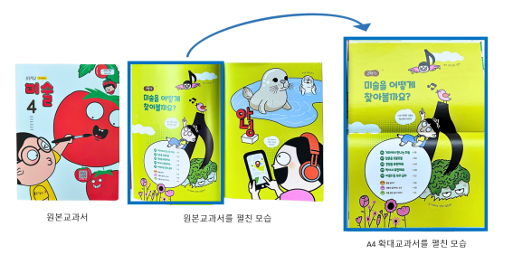 국립특수교육원은 이런 의견을 반영해 A4 확대 교과서를 제작·보급하게 됐다. A4 확대 교과서는 일반교과서와 지면의 크기는 같지만, 글자와 그림을 2배로 확대하고 무선 제본으로 구성해 더욱 크게 볼 수 있으며 내구성도 개선됐다.