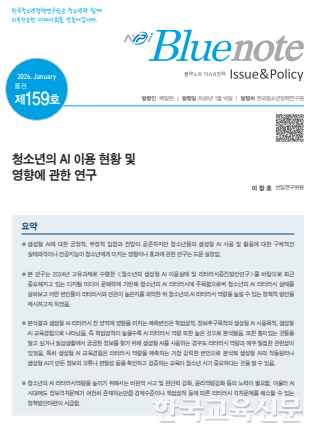 한국청소년정책연구원은 최근 발간한 ‘이슈앤정책’(통권 제159호) ‘청소년의 AI 이용 현황 및 영향에 관한 연구’에서 2024년 수행한 생성형 AI 이용실태 조사 데이터를 분석한 결과 이같이 나타났다고 밝혔다.