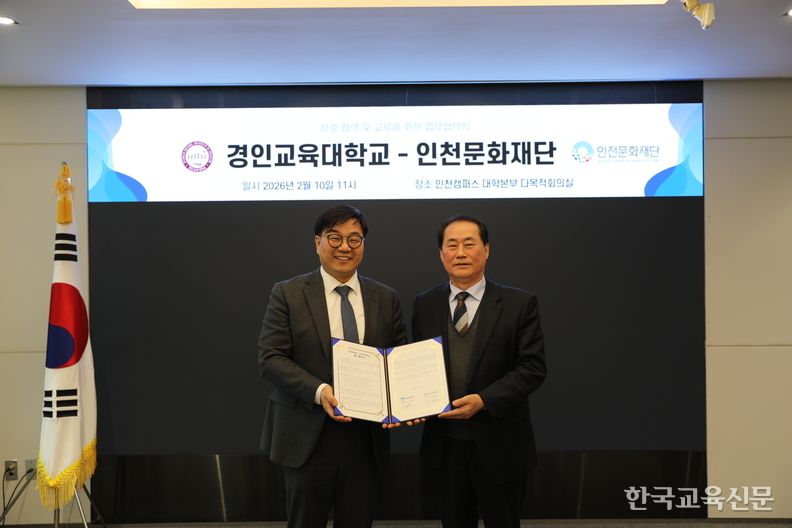 경인교대가 인천문화재단과 손잡고 지역 문화예술 자산을 교육과 연계하는 협력 모델 구축에 나섰다. 경인교대는 10일 인천문화재단과 지역 문화예술 진흥 및 교육 활성화를 위한 업무협약(MOU)을 체결했다고 밝혔다.