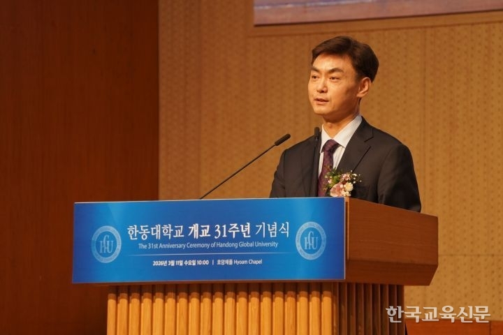 한동대가 11일 교수와 직원 등 학교 구성원들이 참석한 가운데 개교 31주년 기념식을 열고 새로운 시대적 사명을 선언했다. 이번 행사는 기독교 건학 정신을 바탕으로 연혁 보고와 총장 기념사, 공로자 표창 수여 순으로 진행됐다.