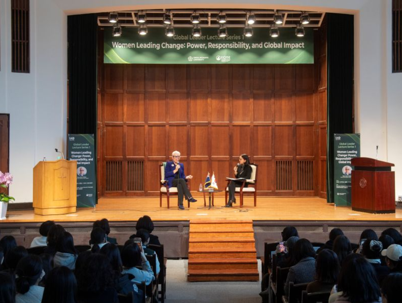 강연 이후에는 학생 사전 질문을 바탕으로 한 대담과 현장 질의응답이 이어졌다. 인공지능 시대 여성 리더십에 대한 질문에 시플리 전 총리는 기술 윤리와 노동시장 변화 대응을 주요 과제로 제시하며 “인간 중심의 지속가능한 의사결정 과정에서 여성의 역할이 중요하다”고 밝혔다.