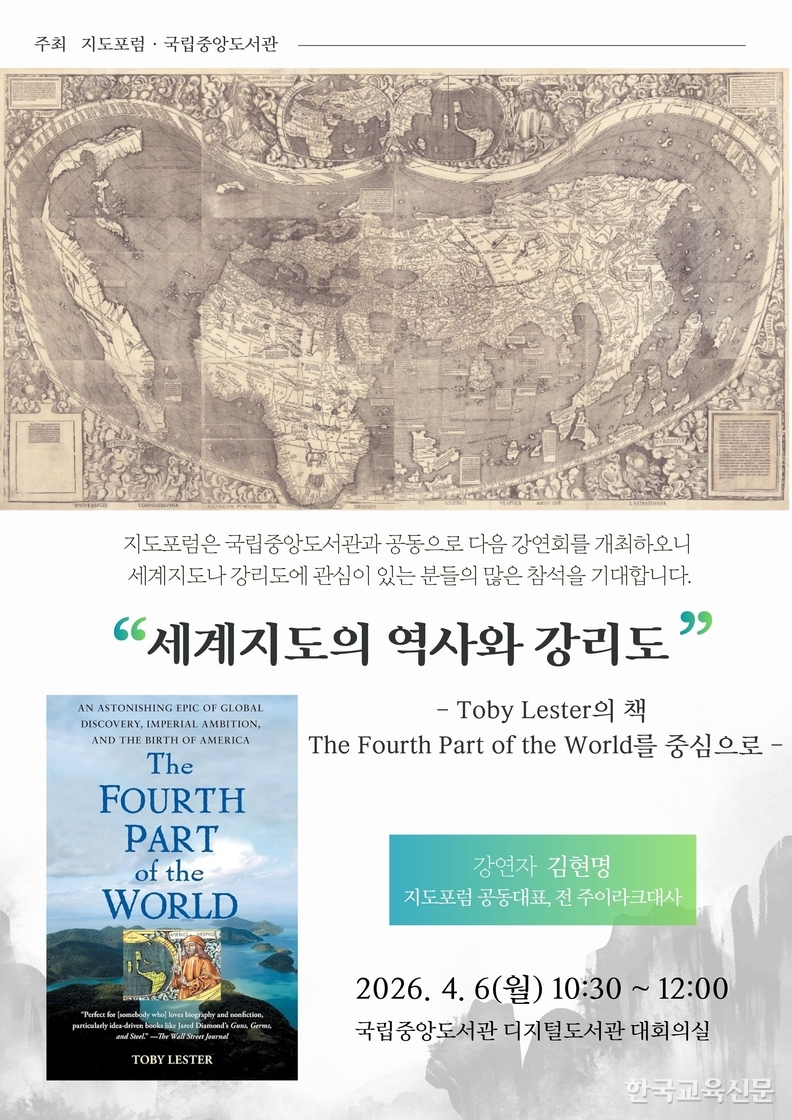 이같은 지정학적 요소를 이해하고 이를 바탕으로 '지도의 힘'을 기르기 위한 기회를 갖고자 6일 10:30-12:00, 국립중앙도서관 디지털도서관 대회의실에서 전 주이라크 대사를 엮임한 김현명(현 의회외교활동 자문위원장) 씨가 '세계지도의 역사와 강리도'를 주제로 강연회를 개최한다. 지도포럼·국립중앙도서관에서는 이에 관심이 있는 분들의 많은 참여를 기대하고 있다.