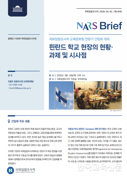 국회입법조사처는 “핀란드 사례를 참고해 한국 교육의 방향을 모색하고 입법·정책 개선에 반영할 계획”이라고 밝혔다.