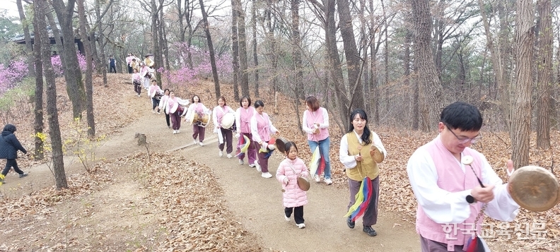 층층나무 쉼터에 도착한 공연단은 신명나는 사물놀이를 선보였고, 참석자들은 박수와 환호로 화답했다. 자연과 전통이 어우러진 이 장면은 그 자체로 한 폭의 그림처럼 아름다웠다.
