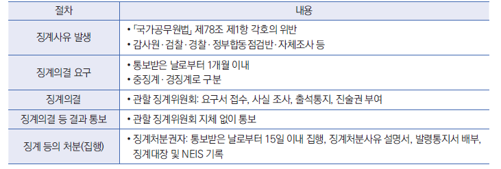 A. 징계사유 발생일로부터 3년을 경과한 때에는 징계 시효가 완성돼 징계할 수 없습니다. 다만 금품 및 향응수수, 공금횡령, 유용의 경우에는 5년, 성폭력범죄, 아동청소년대상 성범죄의 경우에는 10년이 징계시효입니다.