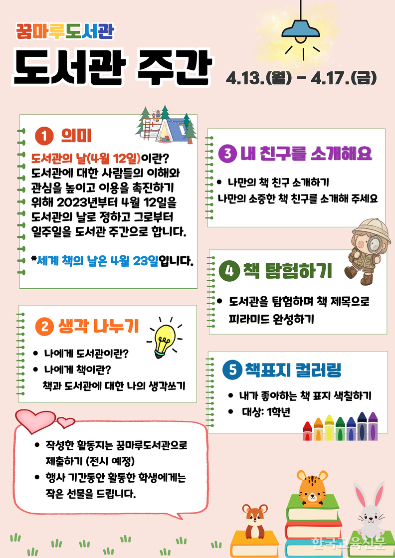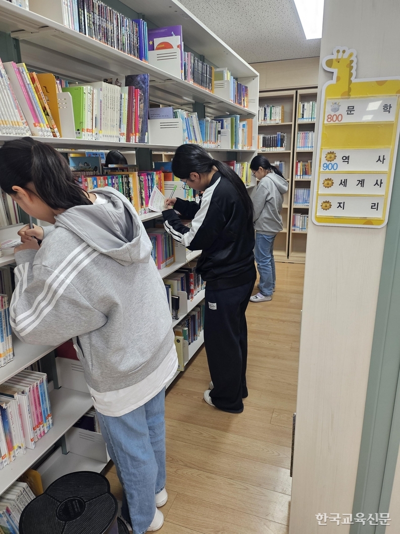 이어 ‘내 책 친구를 소개해요’ 활동에서는 자신이 아끼는 책을 친구들에게 소개했다. 재미있었던 장면, 감동받은 이야기, 추천하고 싶은 이유를 함께 나누며 자연스럽게 책에 대한 관심을 넓히는 계기가 됐다. ‘책 탐험하기’ 활동에서는 도서관 곳곳을 둘러보며 다양한 책을 찾아보고, 책 제목을 활용해 피라미드를 완성하는 미션을 진행했다. 학생들은 즐겁게 도서관을 탐험하며 책과 한층 더 가까워졌다.