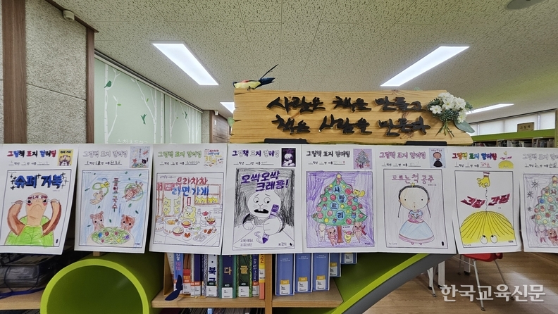 또한 1학년 학생들을 대상으로 한 ‘책 표지 컬러링’ 활동에서는 자신이 좋아하는 책의 표지를 정성껏 색칠해 보는 시간을 가졌다. 알록달록한 색으로 꾸민 책 표지에는 학생들의 상상력과 개성이 가득 담겼다.