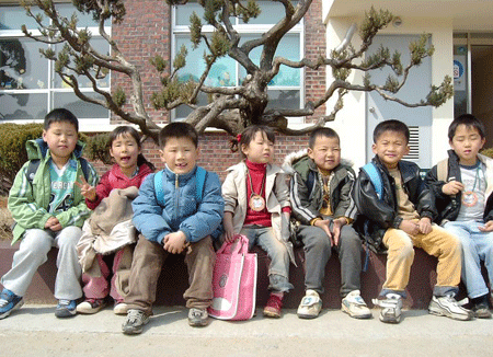 오늘은 촉촉히 봄비가 내렸습니다. 머지않아 새싹이 트고 우리들도 새싹과 함께 무럭무럭 자라겠지요? 입학한지 20여일! 내 이름도 써보고 예방주사(뇌염)도 맞았습니다. 주사 맞는 동안 아무도 안 울었습니다. 모두가 착한 1학년이지요. 4시간 끝나고 먹는 점심도 꿀맛 같습니다. 점점 학교생활에 익숙해졌지만 어김없이 찾아오는 학년초 열병에 아직도 에스키모 쟘바를 못 벗은 친구도 있습니다. 집이 멀어 걸어가지 못하고 학교 버스를 기다리며 양지쪽에 앉아 있는 이들은 자연을 닮은 학교 옥계초등학교 1학년 친구들이랍니다.
