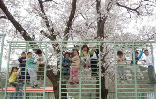벚꽃은 금방 피었다 금방 사라지지요. 오늘 하얗게 핀 벚꽃속으로 흠뻑 빠졌어요. 벚꽃 닮은 웃음이 사랑스런 아이들. 벌들은 윙윙 합창을 하고 우리는 늑목(肋木)에 올라 하하 호호!!!