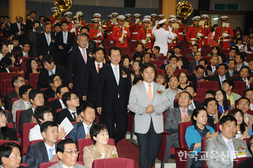 한국교총(회장 안양옥)은 스승의 날을 4일 앞둔 11일 논산문화예술회관에서 서남수 교육부 장관, 황명선 논산 시장 등 500여 명이 참석한 가운데 제32회 스승의 날 기념식을 개최했다.