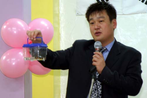 국민의례가 끝난 후 ‘원장님 축사’가 이어졌다. 축사가 끝난후 ‘반 소개 및 담임 소개’가 진행되었다. 3세반, 4~5세반, 5~6세반, 6~7세반 등으로 구성된 담임이 먼저 인사를 하고, 미술선생과 컴퓨터선생이 인사를 했다. 인사가 끝난 후 담임에게 출석부를 전달하고 ‘교사의 신조’를 낭독했다. 이후 어린이들은 담임선생을 따라 교실로 가서 수업을 받고, 학부모는 남아서 ‘교육 프로그램 안내’를 받았다. 연간 교육일정과 요일별로 진행되는 주별 교육 일정을 비롯한 어린이집 교육 프로그램에 대한 내용이었다. 집안 사정에 따라 오후 2시, 오후 4시, 오후 6시까지 아이를 맡길 수 있게 되어 있었다. 체험학습에서는 매달 가재, 도둑게 등 한 마리씩 아이들 손에 생물을 보내 집에서 키우게 한다는 이야기에 관심을 갖는 학부모들이 많았다. 생물들이 죽으면 어린이가 상처를 받기 때문에 잘 키워야 한다고 했는데, 다소 부담이 가는 이야기였다. 담당선생이 가재와 도둑게를 직접 가져 와서 보여주어 사진도 찍으며 자세히 살펴보았다. 1시간 여에 걸친 프로그램 안내가 끝나고 아이들이 다시 입학식장으로 내려왔다.