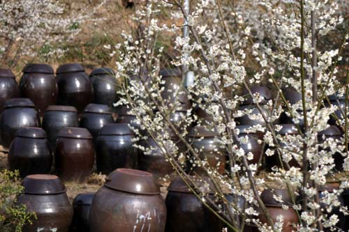 그곳을 지난 주말 밀양의 ‘삼량진 딸기한마당 축제’를 보고 난 후 아들과 함께 들렀다. 매화밭 입구에는 물레방아가 제일 먼저 손님을 맞는다. 물레방아 옆으로는 장독이 길게 늘어서 있어 사진찍기에 더없이 좋다.