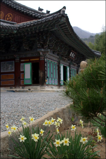 대원사 경내에도 다양한 들꽃이 시선을 사로 잡았다. 특히 대웅전 주변에 만개한 수선화 무리가 만개해 기분이 좋았다. 높이 6.6m의 대원사 다층석탑(보물 제 1112호)은 입구가 막혀 있어 접근이 불가능해 먼발치에서 바라다볼 수 밖에 없었다.