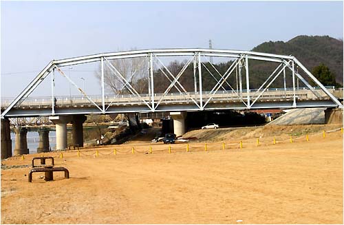 6·25전쟁시 북한군의 도하 방지를 위해 폭파된 다리의 경간은 그 해 10월 총반격 때 침목 등으로 긴급 복구한 이후 계속 인도교로 활용되었다. 하지만 복구 부분이 너무 노후되어 1979년 11월부터는 통행을 전면 차단한다. 한때 철도청에서 다리의 철거를 검토하였으나 호국의 상처를 간직한 다리를 계속 보존하자는 군민들의 의사가 받아들여진다.