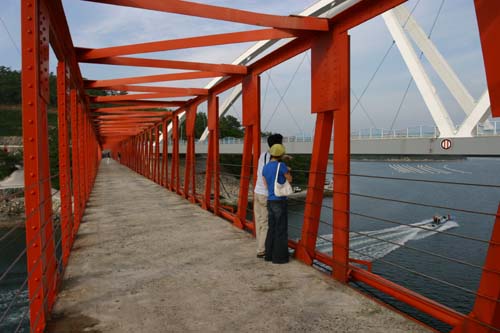 길이는 170m, 폭은 3m, 높이는 13.5m의 빨간색 철제 다리로 바다와 어우러지는 풍경이 시원스럽다.