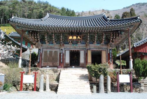 대웅전은 팔작지붕에 다포식 건축물로 우선 화려한 느낌을 받는다. 대웅전을 제외한 탐진당, 적묵당을 비롯한 절집은 가파른 비탈에 세우느라 처마들이 서로 닿지 않도록 한쪽은 팔작식 지붕, 다른 쪽은 겹처마 맛배지붕으로 지었다. 처마 밑 공포는 화려한 다포식과 단아한 주심포식이 조화를 이루고 있다.