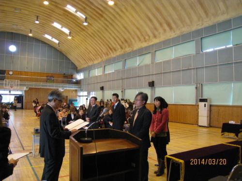 오후 1시 40분부터 3시까지의 일정은 본교 강당에서 이루어졌다. 2014학년도 우리 자녀의 학급을 돌봐줄 담임선생님을 소개하고, 2013학년도 학교 교육을 위해 수고해주신 분들에게는 감사장을 전달하였다. 그리고 본교에서 실시할 2014 학교 교육과정 설명과 더불어 학부모님들의 자녀교육에 기름진 자양분이 될 만한 각종 연수도 실시하였다. 또한 이 자리를 통해 학교운영위원회 및 학부모 임원 의원을 선출하였는데 이를 통해 학부모님들 역시 단순한 교육의 수혜자 혹은 객체가 아니라 동반자요 주체임을 자각하는 계기가 되었다.