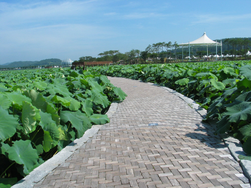 탐방로 주변에 만들어진 돌로 만든 징검다리를 건너면 어린 동심의 세계로 빠져 들게 된다. 가위 바위 보를 하며 징검다리를 건너는 연인을 보면 그들의 얼굴이 큰 백련이 된다. 순수한 얼굴은 백련의 얼굴인 것이다. 어린아이의 순수한 얼굴이 되면 그것이 부처의 얼굴이고, 깨달은 자의 얼굴이 아니겠는가. 이것이 깨달음을 얻는 것이 아닐까.