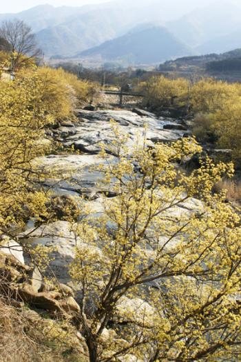 산수유는 다년생 나무로 3월초에 꽃망울을 맺기 시작한다. 지리산에서 흘러내리는 맑은 물을 먹고 꽃망울을 터트리기 시작하면 수줍은 시골 처자처럼 몰래몰래 번져 마을은 이내 노란 산수유 꽃으로 뒤덮인다. 이 시기에 맞춰 산수유축제도 열린다. 산수유두부먹기, 산수유 떡치기, 산수유꽃길걷기 등 산수유와 관련된 다양한 행사가 펼쳐진다. 지리산온천단지에서 축제가 열리니 한창 때라면 여기서도 충분히 노란 산수유의 정취를 감상할 수 있다. 하지만 그림엽서 같은 진풍경을 원한다면 지리산 중턱의 산중 마을을 답사하는 것이 좋다. 마치 노란 색으로 그린 수채화 그림 속으로 걸어 들어가는 듯 동화 속 분위기다.
