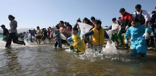 신비한 생태를 간직한 연어는 동해 연안의 물고기 자원고갈로 보릿고개를 연상케 할 만큼 어려움을 겪고 있는 어민들에게 새로운 소득원으로 부상하고 있습니다. 우리나라에서 연어의 양식은 일제시대 1913년 함경남도 고원에서 출발했습니다. 1967년 삼척 오십천과 경남 밀양강에 부화장이 건립되면서 본격적인 연어 자원을 늘리기 위한 노력이 시작됐습니다. 그 후 1984년 국립수산과학원 양양내수면연구소(현재의 동해수산연구소 연어연구센터)가 설립되면서 방류량이 크게 증가했습니다. 수십만 마리에 불과하던 연어 방류량이 1999년과 2000년에는 2000만 마리로 늘어나면서 정치망에 의한 연어 포획이 허가돼 연간 5억 원 이상의 소득을 올리면서 새로운 어업 소득원으로서 가능성을 보였습니다. 동해안에서의 연어 포획량은 100〜00만 마리(회귀율 1〜%)를 보여 치어 방류를 1억 마리 이상 돌파할 경우 자원 고갈로 신음하는 동해안 어민들에게 희망을 주는 어종으로 기대되고 있습니다.