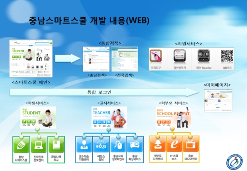 충남교육연구정보원은 스마트 학습서비스 제공을 위한 충남 이러닝통합서비스를 추진 중이다. 충남교육청사 이전 계획과 함께 2012년까지 교육정보화시스템의 시설 이전 및 통합이행방안 수립과 함께 우수한 공교육 콘텐츠를 제공할 계획이다. 특히 통합권한 관리를 통해 포털 및 개별화서비스를 운영할 예정이다.
