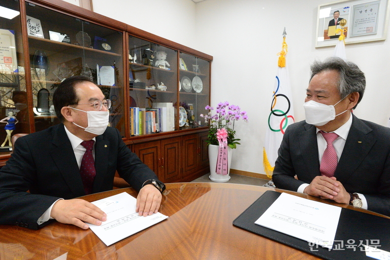 하윤수 한국교총 회장은 23일 이기흥 대한체육회 회장과 간담회를 갖고 학교 체육 활성화와 학생 선수 등에 대한 인권침해를 예방하는 데 협력하기로 했다.