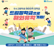 한국장학재단은 2026학년도 우수고등학생 해외유학 장학금(드림장학금) 신규 장학생 30명을 선발한다고 18일 밝혔다. 신청 기간은 3월 18일부터 4월 15일 18시까지이며, 기초생활수급자 또는 차상위계층에 해당하는 국내 고교 2·3학년 중 성적이 우수하고 해외대학 진학을 희망하는 학생이 대상이다. 신청은 재단 누리집을 통해 학생이 직접 하면 된다. 선발은 서류심사와 면접심사를 거쳐 이뤄진다. 최종 선발된 장학생에게는 고교 재학 기간 동안 월 50만 원(고2), 월 70만 원(고3)의 학업장려비가 지원되며, 1대1 전문가 상담 등 해외대학 진학을 위한 프로그램도 함께 제공된다. 드림장학금은 2012년 도입된 이후 지난해까지 총 216명이 12개국으로 해외유학을 떠났으며, 일부는 졸업 후 국내외 기업 취업과 창업 등으로 진출했다. 특히 올해부터는 해외대학 등록금과 현지 물가 상승을 반영해 장학금 연간 지원 한도를 기존 6만 달러에서 7만 달러로 확대했다. 세계 최우수 대학 입학 장학생을 위한 인센티브도 새롭게 마련해 저소득층 우수 인재의 글로벌 진출 지원을 강화했다. 배병일 이사장은 “경제적 여건으로 해외유학을 꿈으로만 여겼던 학생들이 드림장학금 기