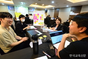 제68회 전국현장교육연구 발표대회가 27일 경인교대 경기캠퍼스에서 열린 가운데 인성교육분과 경기 슬기초 노아단(왼쪽)교사와 정윤(오른쪽) 교사가 '상상 GPT 프로그램으로 따뜻한 디지털 시민성 기르기'란 주제로 발표 하고 있다. 제68회 전국현장교육연구 발표대회가 27일 경인교대 경기캠퍼스에서 열린 가운데 유아교육 분과에 출품한 교사들이 발표에 앞서 논의를 하고 있다.