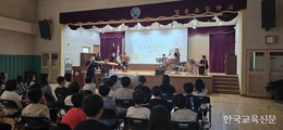 경기 남수원초(교장 김현숙)는 ‘한 학기 한 권 읽기’와 연계한 ‘생각이 자라는 인문학 교육’으로 작가와의 만남, 문학 공연, 북콘서트를 전교생 대상으로 운영하였다.학년 별 학급에서는 ‘한 학기 한 권의 도서’를 읽고 책의 내용에 관한 질문, 작가에 대한 궁금한 점, 독서 골든벨 등 다양한 독후활동을 하였으며 책을 읽고 생각을 나누는 시간을 가졌다. 10일엔1~2학년 대상으로 「아무도 못찾는 숨바꼭질」, 「날아라, 삑삑아」 생태 동화 작가 권오준 작가와의 만남을 가졌다. 자연을 사랑하고 생명의 소중함을 이야기하는 작가의 따뜻한 이야기를 통해 학생들은 자연과 더불어 살아가는 생태 감수성을 키우는 소중한 시간을 가졌다. 11일은5~6학년 대상으로 제갈인철 작가의 북콘서트가열렸다. ‘책과 노래의 즐거운 만남’을 주제로 진행된 북콘서트에서는 이야기 속 장면을 바탕으로 한 창작곡을 직접 부르며, 문학과 음악이 하나로 어우러지는 특별한 공연을 선보여 학생들의 큰 호응을 얻었다. 3~4학년은 12일서찰을 전하는 아이 문학 공연을 관람했다.1894년 조선을 배경으로 보부상 아버지를 따라 장터를 떠돌던 한 소년이 아버지의 갑작스러운 죽음 이후 중요한 서찰을 대신 전달하게 되면서 겪는 이야기를 담고 있다. 한 소년이 어려움을 극복하며 성장해 나가는 과정을 그린 역사 동화로, 한자 문화와 조선 후기의 시대적 상황을 자연스럽게 배울 수 있는 교육적 공연이었다. 행사에 참여한 학생들은 “책 속 주인공을 직접 만난 것 같아 신기하고 재미있었어요”, “작가님이 들려주는 이야기를 듣다 보니 다른 책도 읽고 싶어졌어요” 등의 다양한 소감을 전하며, 책에 대한 관심과 흥미를 높일 수 있는 계기가 되었다. 김현숙 교장은 “이번 인문학 교육은 단순히 책을 읽는 데서 그치지 않고, 작가와의 대화, 음악, 문학 공연 등 다양한 문화적 체험을 통해 독서의 폭을 넓히고, 사고력과 감수성을 키우는 데 큰 도움이 되었다”고 전했다. 남수원초는 앞으로도 학생들이 삶과 연결된 책 읽기를 통해 생각을 키우고, 자신의 삶을 주도적으로 가꾸어 나갈 수 있도록 다양한 인문학 프로그램을 지속해 나갈 예정이다.