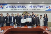 유원대가 인공지능 전문기업 마음AI와 업무협약을 체결하고 인공지능(AI) 분야의 교육 및 연구 역량 강화에 나섰다. 9일 충북 영동캠퍼스 심우관 대회의실에서 열린 이번 협약식(사진)은 산업 현장의 변화에 맞춘 인재 양성을 목적으로 마련됐다. 양 기관은 이번 협력을 통해 AI 기본 교육 과정을 공동 개발하고 관련 연구 분야에서 긴밀한 협업 체계를 구축하기로 했다. 특히 학생들의 인공지능 활용 능력을 높이기 위한 ‘AI 리터러시’ 교육을 확대해 전공과 관계없이 AI 기술을 이해하고 다룰 수 있는 기반을 조성할 계획이다. 유원대와 협력하는 마음AI는 인공지능 플랫폼을 기반으로 물리적 환경에서 작동하는 ‘피지컬 AI’ 기술을 개발해 공급하는 전문 기업이다. 대학 측은 기업의 실무 기술력과 대학의 교육 인프라를 결합해 교육적 시너지를 낼 것으로 보고 있다. 정현용 유원대 총장은 “AI 기술이 산업과 사회 전반의 변화를 주도하는 시점에서 대학과 기업 간 협력은 매우 중요하다”며 “학생들이 미래 산업 환경에 대응할 수 있는 AI 인재로 성장하도록 교육 역량을 집중하겠다”라고 밝혔다.
