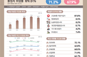 경기침체로 지난해 대학교·대학원 졸업생 취업률이 하락해 다시 60%대로 떨어졌다. 반면 외국인 유학생 취업률은 급상승하면서 30%대를 넘어섰다. 교대 취업률는 60%대로 올라섰다. 교육부, 국가데이터처, 한국교육개발원은 30일 이러한 내용이 담긴 '2024년도 고등교육기관 졸업자 취업통계조사'와 '2023년도 고등교육기관 졸업자 일자리 이동통계' 결과를 발표했다. 전국 고등교육기관의 2024년 2월과 2023년 8월 졸업자 63만 4904명을 대상으로 2024년 12월 31일 기준 취업 및 진학 현황, 취업 준비기간, 급여 수준 등의 취업 상세 정보 조사 결과다. 이에 따르면 전국 대학·대학원 졸업생 가운데 취업자는 37만7120명으로, 취업대상자(54만2988명)의 69.5%로 전년(70.3%) 대비 0.8%포인트(p) 낮게 나타났다. 취업률을 학교 유형별로 보면 대학원이 82.1%로 가장 높았고, 전문대 72.1%, 일반대 62.8%, 교대 60.5% 순이다. 교대는 전년 대비 1.0%p 오른 수치다. 계열별로 보면 의약계열 취업률이 79.4%로 가장 높았고, 교육계열(71.1%)과 공학계열(70.4%)도 평균보다 높았다. 사회계열(69.0%)과