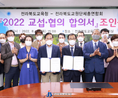 강원교총(회장 배성제)과 강원특별자치도교육청(교육감 신경호)은 6일 도교육청 대회의실에서 ‘2022년도 교섭‧협의 합의서 조인식’을 갖고 ▲전문직교원단체 활동 보장 ▲학교지원센터 기능 강화 ▲교직원 특별건강검진비 확대 지원 ▲교원 처우 개선 및 복지 ▲교육활동비의 현실성 있는 예산 책정 ▲교권침해로부터 교원의 보호 강화 등 총 62개 항에 대해 합의했다. 지난해 9월 강원교총의 교섭‧협의 요청으로 진행된 이번 교섭‧협의는 교육 및 학교행정 개선과 교원 복리후생 증진, 교권신장, 근무 부담 경감, 교원인사제도의 합리성 확보에 초점을 맞춰 진행됐다, 배성제 회장은 “교원들의 근무 여건 개선 및 전문성 신장을 위한 합의가 이뤄져 감사하다”며 “현장 선생님들이 체감할 수 있도록 합의내용을 적극적으로 알리고 이행될 수 있도록 하겠다”고 밝혔다.…