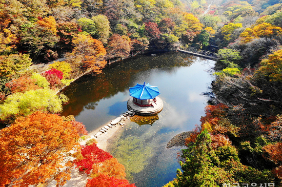 어느새 성큼 다가온 가을, 산과 들이 저마다의 색깔로 옷을 갈아입기 시작했다. 기상정보업체 웨더아이에 따르면 10월의 기온이 평년과 비슷하거나 높을 것으로 예상돼 첫 단풍 시기가 평년보다 늦어질 전망이라고 발표했다. 올해 첫 단풍은 9월 30일 설악산을 시작으로, 중부지방에서는 10월 10~22일, 지리산과 남부지방에서는 10월 13~29일 사이에 볼 수 있을 것으로 예상된다. 이번 가을, 마음속 깊은 곳까지 물들일 전국의 단풍 명소로 떠나보자. 1. 내장산 (전라북도 정읍시) '단풍산'이라는 별명을 가지고 있는 내장산은 빨간 단풍나무가 특히 많아 가을이 되면 산 전체가 불타는 듯한 붉은빛으로 물든다. 내장사로 향하는 3km 구간의 단풍 터널은 국내 최고의 단풍 명소로, 하늘을 가릴 정도로 촘촘한 단풍잎들이 만들어내는 터널을 지나면 마치 동화 속 세상에 들어온 듯한 착각에 빠진다. 백양사까지 이어지는 길목에서는 끝없이 펼쳐지는 단풍 대행진을 만날 수 있다. 신정호 주변에서는 잔잔한 호수에 비친 단풍이 마치 거울 같은 풍경을 연출한다. 연자봉에서 내려다보는 내장산 전경은 온 산이 붉은 보석으로 장식된 듯 화려하다. 2. 오대산 (강원도 평창군·홍천