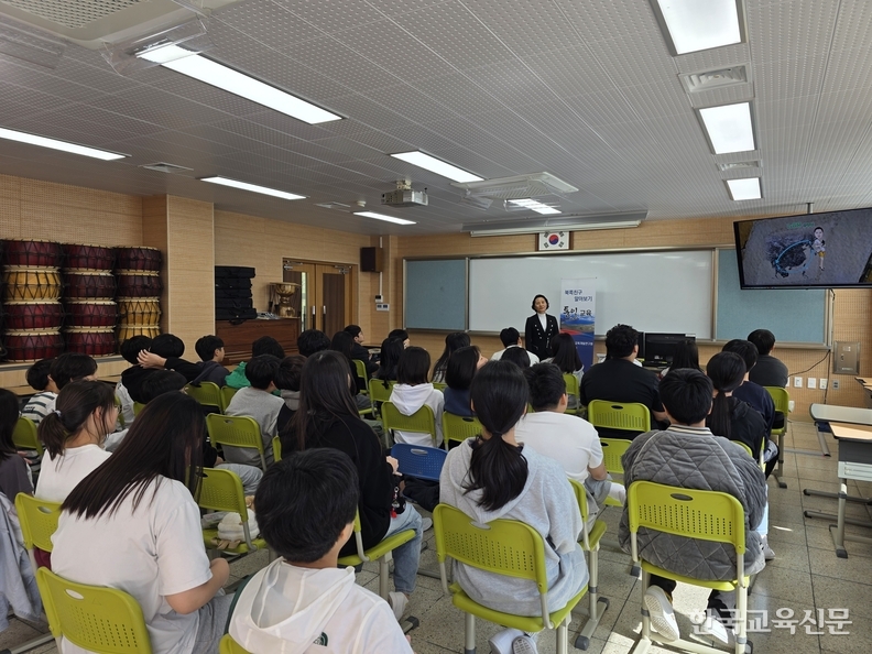 실제 북한 이탈주민 출신 강사가 본인의 북한 탈출 경험 및 또래의 북한 친구들의 학교생활을 흥미있게 강의하여 학생들에게 북한의 실상과 북한에 사는 또래들의 생활에 대하여 친숙하고 자세히 이해할 수 있는 기회를 제공하였다.