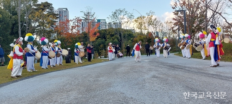 가을빛이 완연한 11월 2일 오후, 수원 영흥숲공원에 북소리와 꽹과리 소리가 울려 퍼졌다. 수원농악단(단장 홍혜영, 이하 농악단)이 전통 농악의 맥을 잇고 지역 문화를 알리기 위해 펼친 거리공연이 열린 것이다. 이번 공연은 수원특례시의 소규모 문화예술행사 지원사업의 일환으로 진행되었으며, 인근 주민 50여 명이 모여 가을 햇살 아래 신명나는 한마당을 즐겼다.