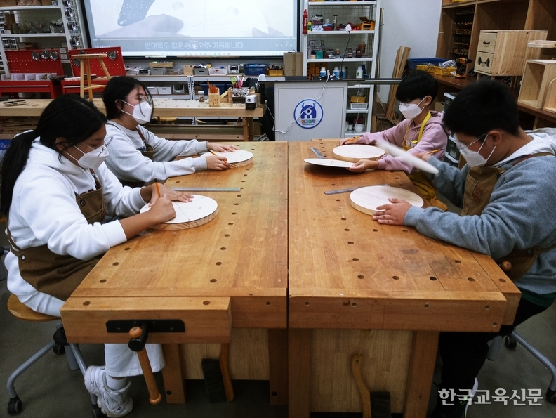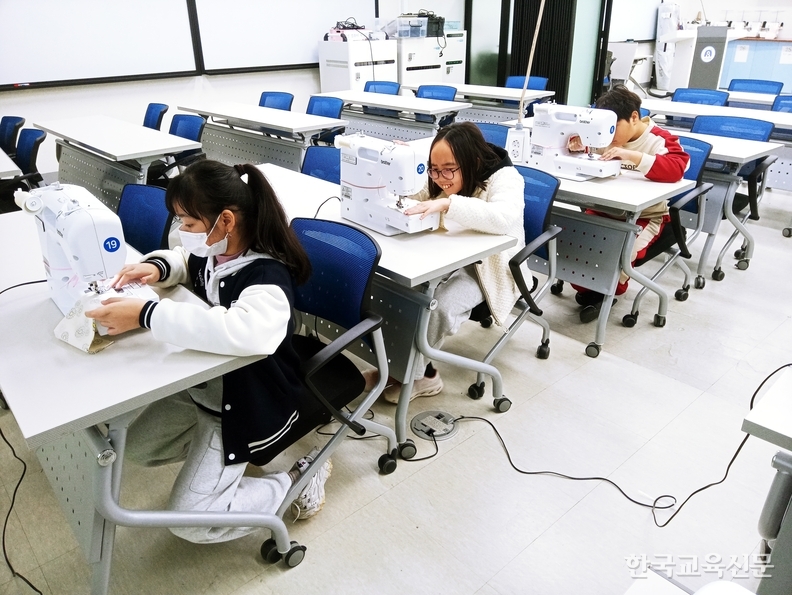 이번 프로그램은 4차 산업혁명 시대에 필요한 역량을 함양하는 데 목적을 두었다. 3~4학년은 재봉 체험으로 직접 쿠션을 제작하고 5학년은 생성형 AI 활용 활동을 통해 본인의 얼굴이 들어간 가방 디자인을 구상하고 제작했다. 6학년은 목공 체험을 통해 공구를 다루는 방법을 익히고 본인만의 의자를 직접 제작했다.