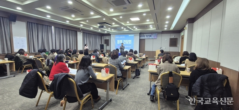 또 강주호 한국교총 회장이 ‘현장의 소리를 듣다’를 주제로 참석자들과 간담회를 갖기도 했다.(사진) 간담회에서는 향후 유아교육 정책에 반영될 수 있는 현장 교원들의 다양한 의견이 제기됐다.