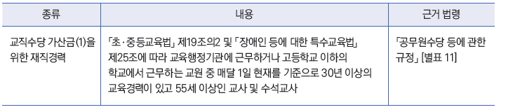 - 2의2. 유치원 교원 자격이 있는 사람이 「유아교육법 시행령」 제29조 제1항 제3호에 따라 유아교육을 실시하도록 지정받은 기관에서 기관의 장 또는 강사로서 전임으로 근무한 경력(해당 기관이 유아교육을 실시하는 기관으로 지정되기 전의 경력은 제외)
