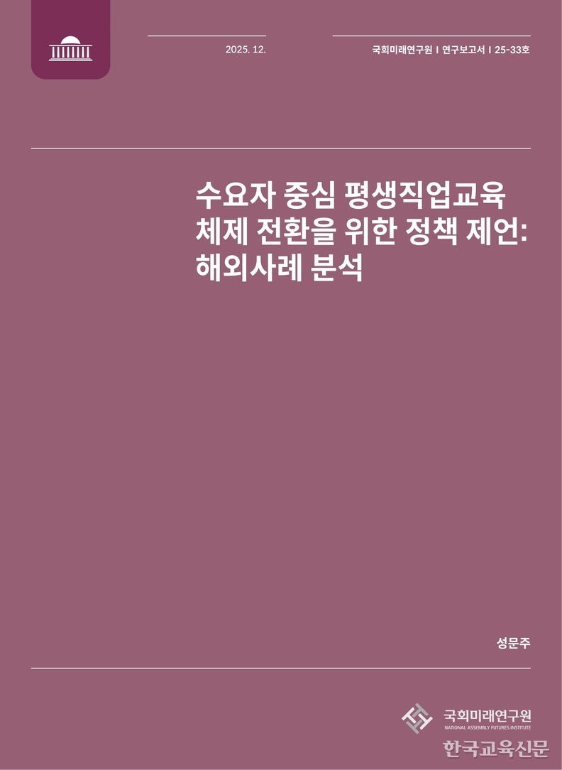 이 같은 해외사례 분석을 토대로 보고서는 우리나라에서도 지역대학을 중심으로 평생직업교육훈련체제를 재편할 필요가 있다고 제언했다. 구체적으로는 모든 성인학습자를 국가 인적자원 정책의 주요 수요자로 재정의하고, 개인의 경력·역량개발 중심 학습경로를 설계하는 수요자 중심 체계를 구축해야 한다는 것이다. 아울러 학습·경력개발·고용 연계를 중심으로 한 통합적 전달체계와 거버넌스 개편, 성과 중심 재정지원과 품질관리 체계 전환, 디지털·데이터 기반 평생직업교육훈련 생태계 구축도 함께 추진돼야 한다고 밝혔다.