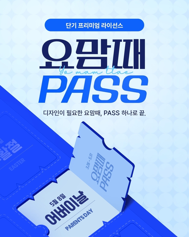 요맘때 패스는 4~5월에 집중된 ▲부활절 ▲어린이날 ▲어버이날 ▲부처님 오신 날 ▲6.3 지방선거 등 대형 행사를 집중적으로 준비할 수 있는 한정 프리미엄 라이선스다. 통상 1년 단위로 계약하는 스톡 업계 관행에서 벗어나, 수요가 높은 기간만 집중적으로 사용할 수 있다는 점이 특징이다.