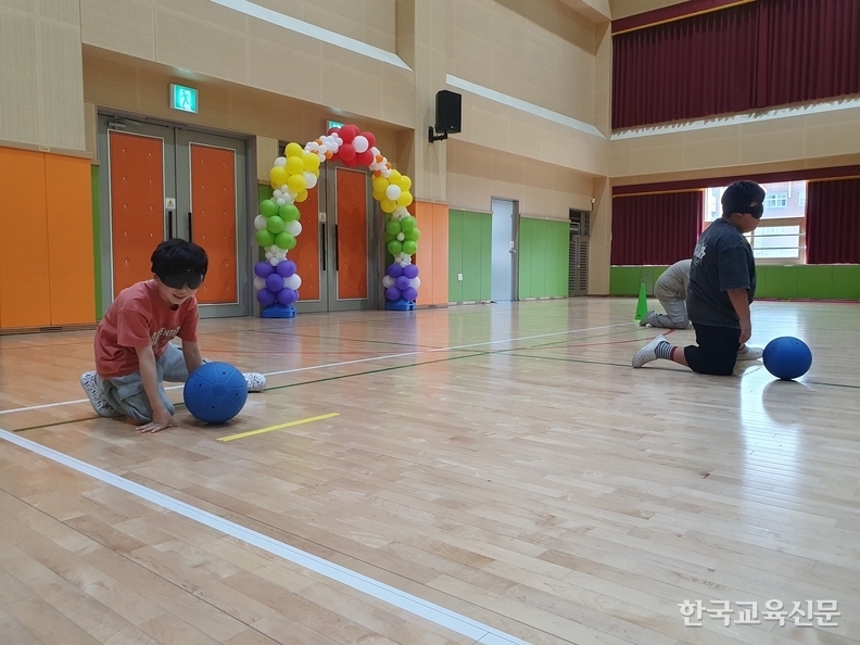 프로그램의 핵심은 시각장애인 스포츠인 ‘골볼(Goalball)’ 체험이었다. 골볼은 시각을 차단한 채 소리에 의존해 경기를 치르는 종목으로, 소리가 나는 공을 상대 팀 골대에 넣는 방식으로 진행된다. 학생들은 드로우 동작과 슬라이딩 등 전문적인 기술을 직접 체험하며 시각장애인의 감각 활용 방법을 온몸으로 경험했다.